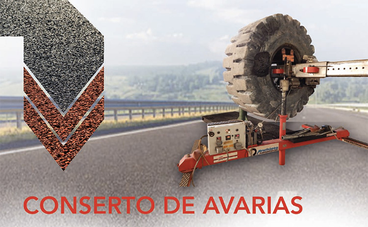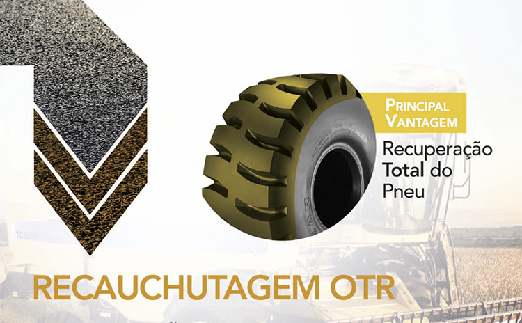 Flyer institucional da área de consertos de avarias para pneus de carga, agrícolas, máquinas e OTR.